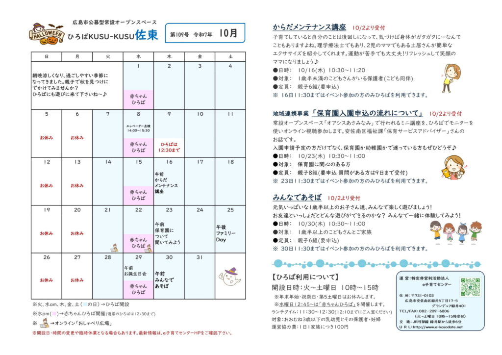 ひろばKUSU-KUSU佐東 10月のカレンダー