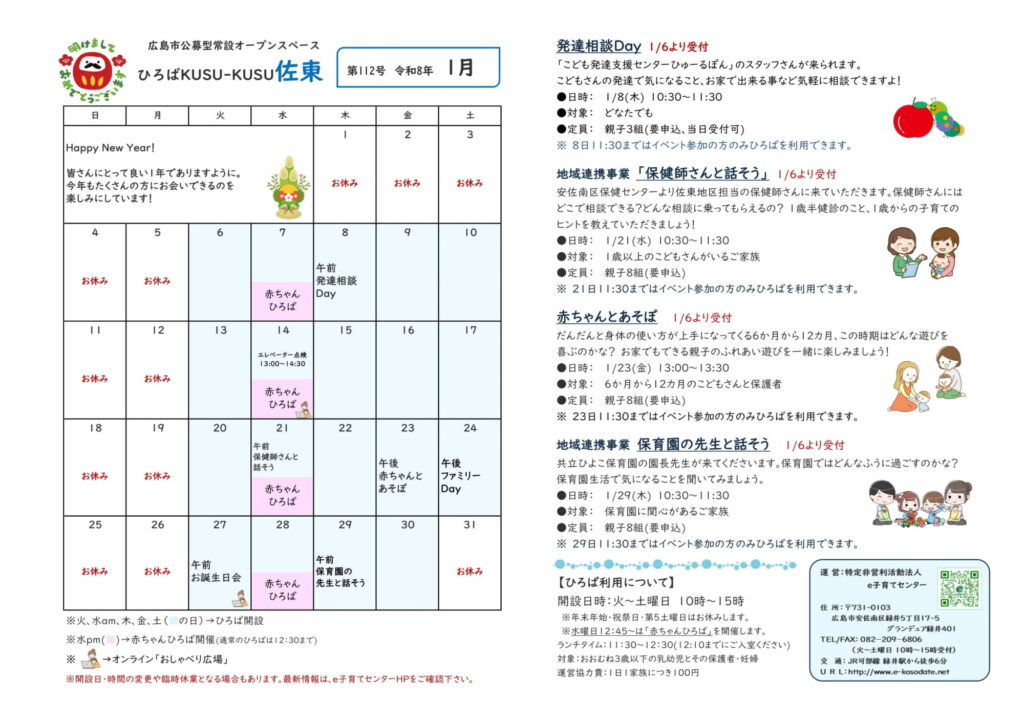 ひろばKUSU-KUSU佐東 1月のカレンダー