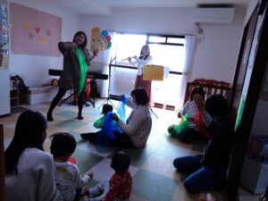 今年もおとのわの皆さん(ピアノ、フルート 声楽の3名)が来て、コンサートを開催してくださいました。6組の親子さんが参加されて元気いっぱいに過ごされました。 曲目はおなじみの曲がいっぱいで、クリスマスメドレーやママへのプレ […]