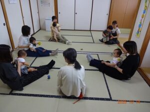 ご家族参加1組さんを含み、5組さんが集まってくださいました。 絵本「いろいろいろんな日」からスタート、好きな抱っこで立ってもらい「どんぐりコロコロ」でゆすりあそびをしました。その後、ゴローンしてまたまた「どんぐりコロコロ […]