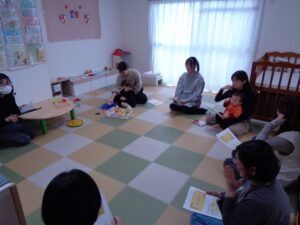 3組の親子さんが参加してくださいました。 人数が少なめだったので、最初はこどもたち一人一人が、あそびたいおもちゃでじっくりあそんでいました。だんだんとお互いのことが気になり、そばに行き、お母さんたちもそこでおしゃべりがは […]