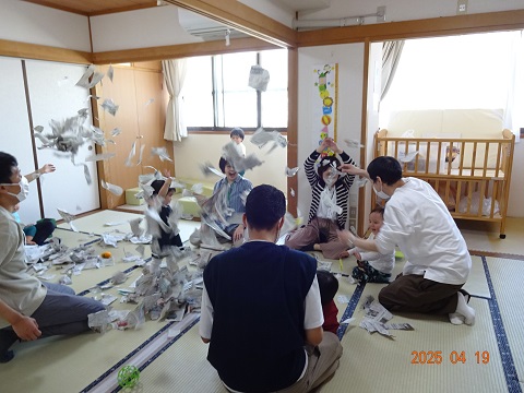 新聞紙あそびでは、びりびりあそびが大人気でした。