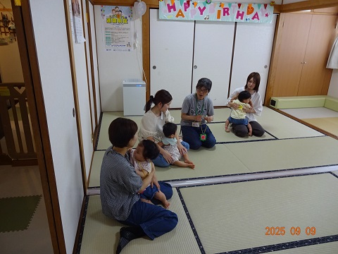 5組の親子さんとスタッフとでお誕生日会を楽しみました。