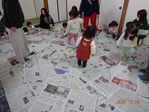 メインの新聞紙遊びはダイナミックに楽しみました。